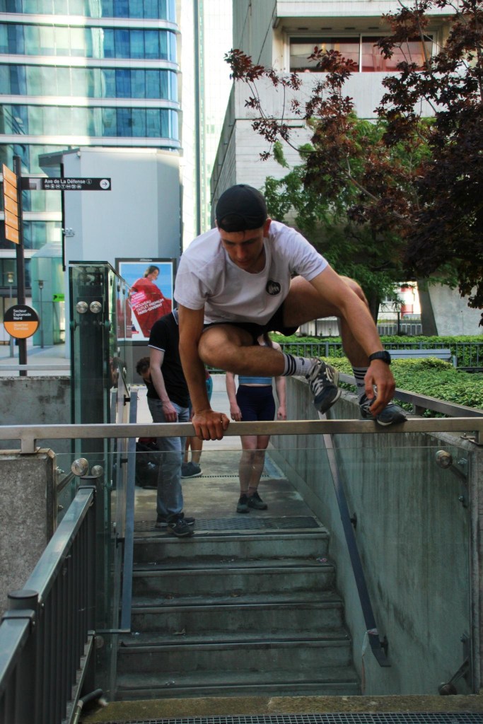 Une super expérience ! Le coach est pédagogue et très sympa, de même que l’équipe avec laquelle on fait ses premières figures. C’est physique et challengeant comme il faut. Et puis la Défense est un spot en or pour commencer (c’était mon cas!) ou progresser comme traceur 🙂