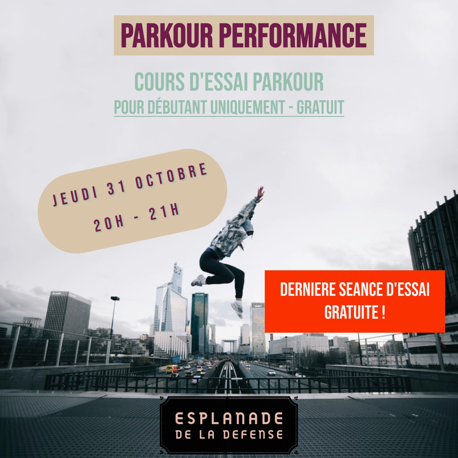 Envie de bouger, de sauter et de découvrir le parkour dans un cadre urbain emblématique ? L’association Parkour Performance t’invite à notre dernière séances gratuites à La Défense, ouvertes aux débutants.